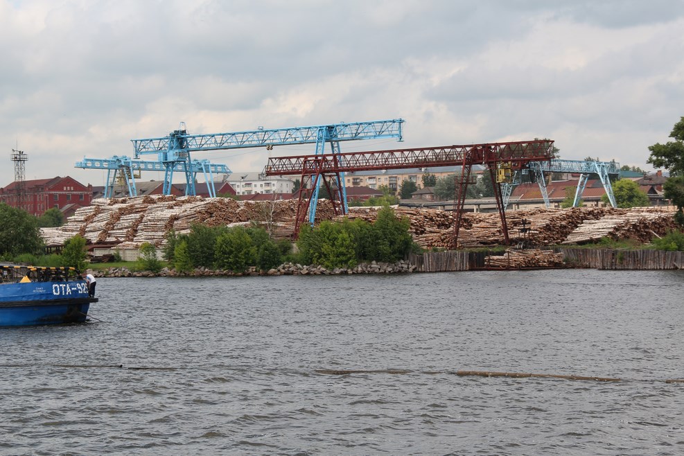 Прямо в центре города находится большой деревоперерабатывающий завод: