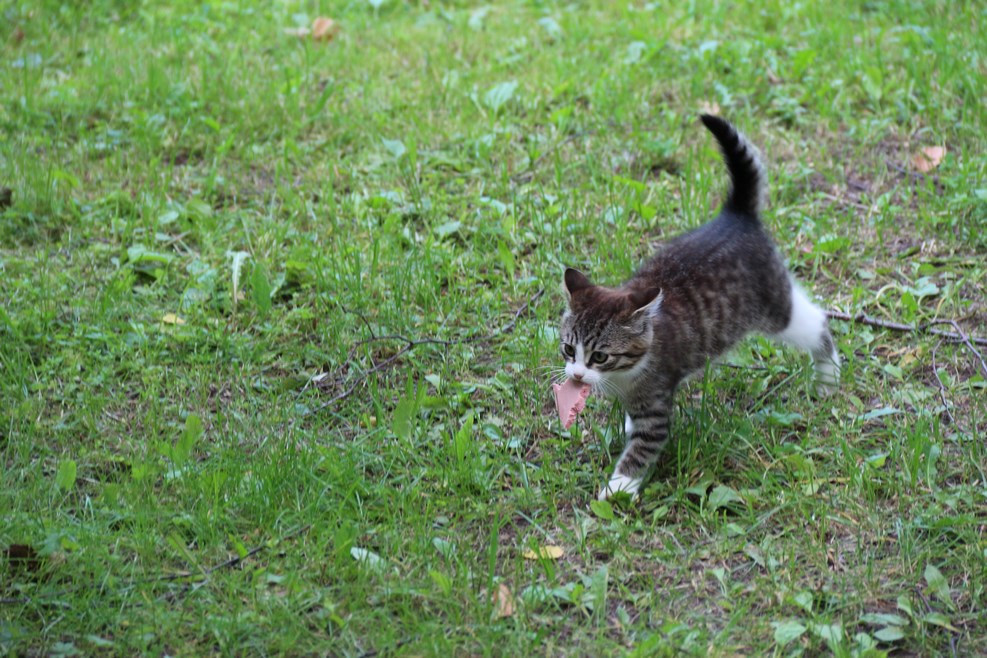 Мы закончили прогулку по парку, а тем временем четырехногий бандит с фотографии выше где-то нашёл добычу: