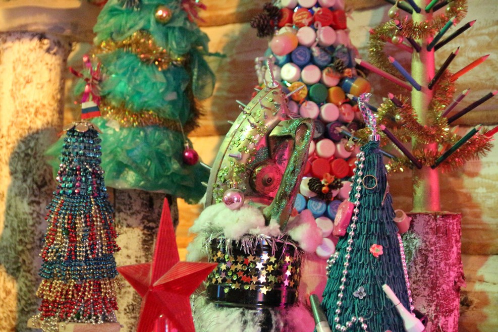 Одна из комнат внутри терема с всевозможными новогодними елками: