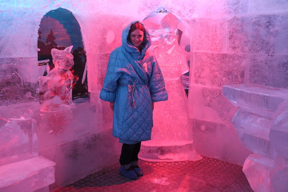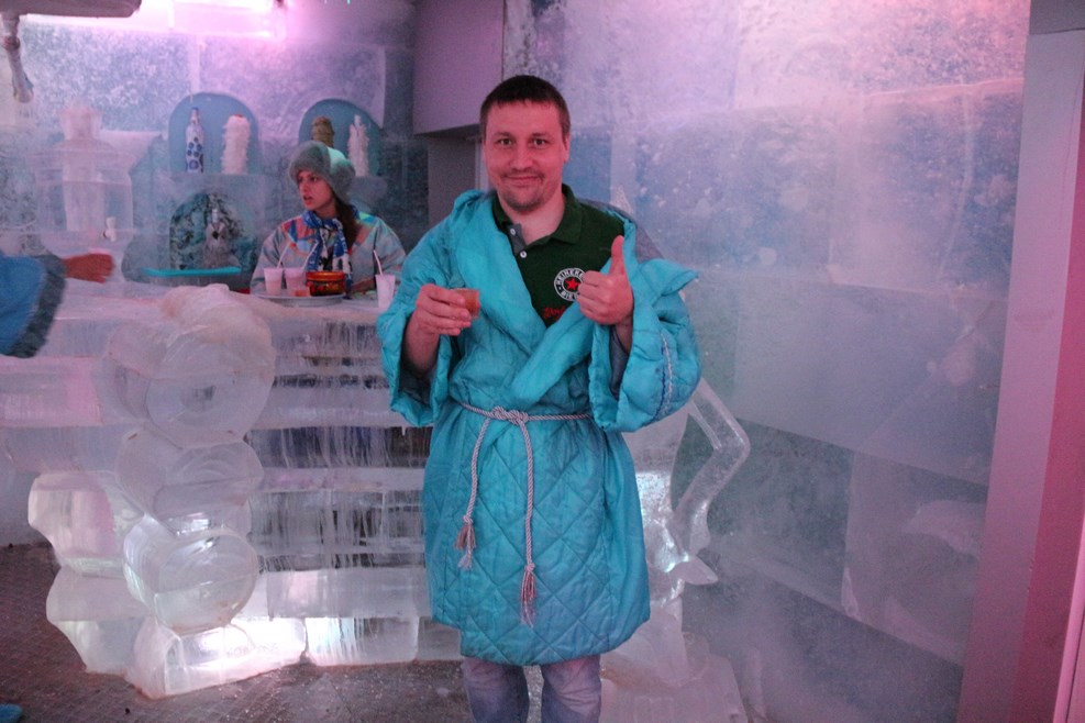 В конце представления на гостей одевают в шубы и ведут в ледяную комнату, где дают бухнуть медовухи из стопок, сделанных из льда: