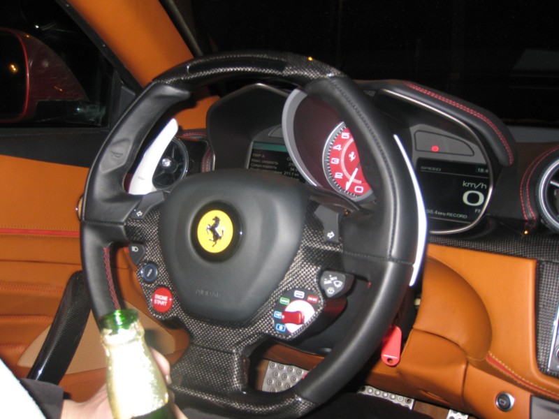 Потом конечно покатушки. Ощущения нереальные. Эта ракета просто выпригивает моментально разгоняясь до 100 км. в час за 3 секунды. Когда этот болид стартует со светофора, такое ощущение, что остальные просто остаются на месте. В сиденье вдавливает так, как будто пассажиры летят на истрибителе. Очень непревычно так же что люди все вокруг оборачиваются, когда эта машина с ревом проносится мимо. Я попытался как смог заснять разгон со светофора до 164 км. в час: