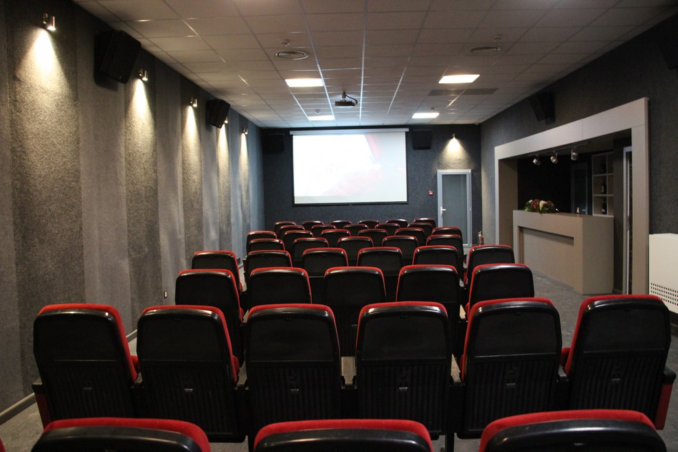 Там нам показали небольшой фильм о заводе. Чтобы просмотр был интереснее, нас начали понемногу «разогревать»: