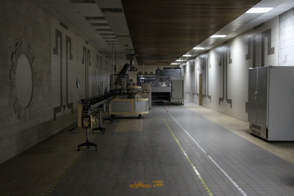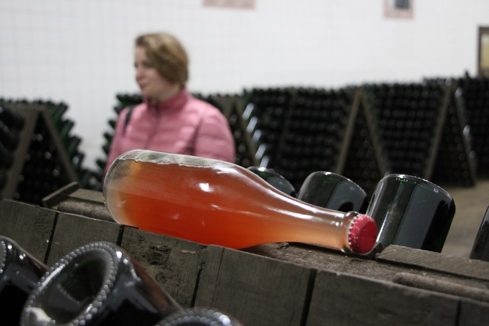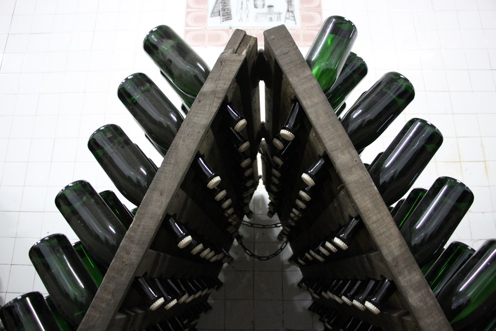Производство игристого вина (или как у нас привыкли называть «Шампанского») начинается тут. Виноматериал разливают в бутылки, отстаивают примерно год для создания нужного давления, а после кладут на стеллажи: