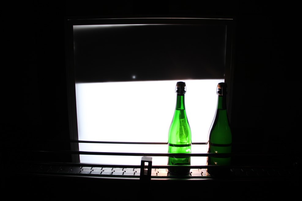 Текущий год, выложенный из бутылок. Композицию меняют раз в год для соответствия с календарем: