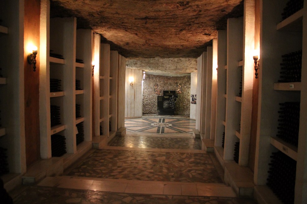 Природный известняк помогает поддерживать постоянную температуру +12…+14 градусов Цельсия и влажность 97-98 % — оптимальные условия для выдержки марочных вин высшей категории качества: