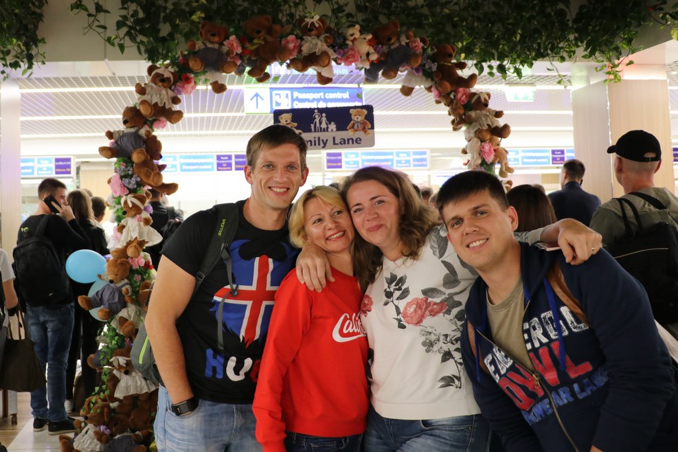 К нам присоединилась Света (в красной кофте на фото) и Юра (справа). Мы все вместе в аэропорту Кишинева: