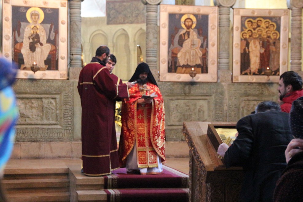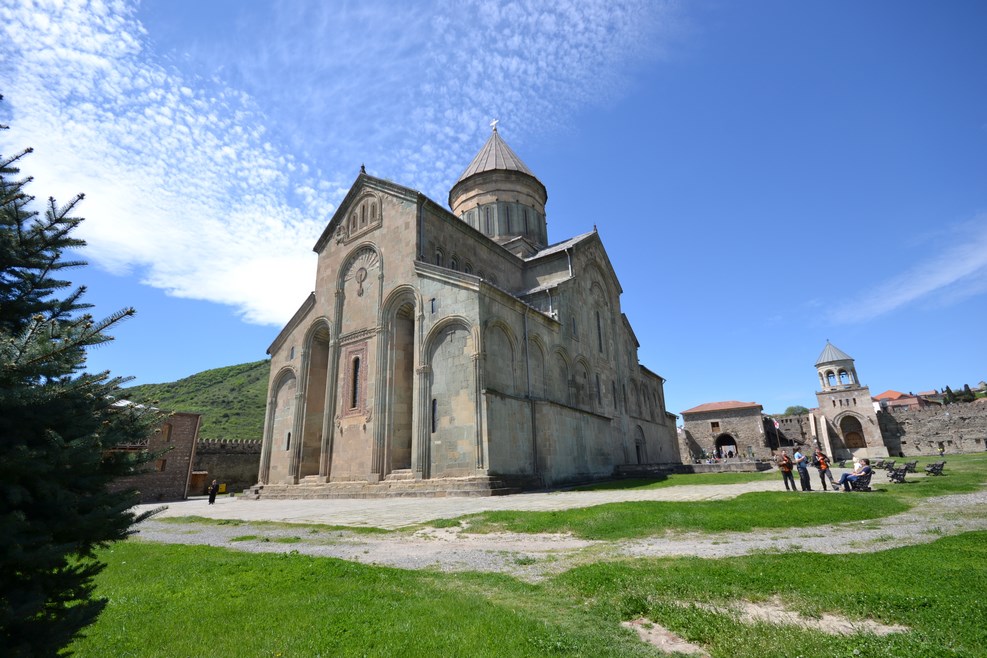 Джеттаводы в Мцхете на фоне Кафедрального собора Светицховели: