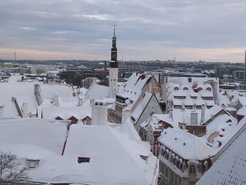 Город нас встретил нечищенными дорогами, хотя трасса худо-бедно была чищена. Мне показалось что эстонский язык похож на финский. В Эстонии говорят по-эстонски, русский понимают практически все. В языке сразу в глаза бросаются слова с 2-мя буквами (STOPP, TALLINN, MENUU, PLAAN и т.д.). Эстонцы с нового года перешли на евро, и продавцы еще неуверенно отсчитывают сдачу, вертя в руках незнакомые деньги.