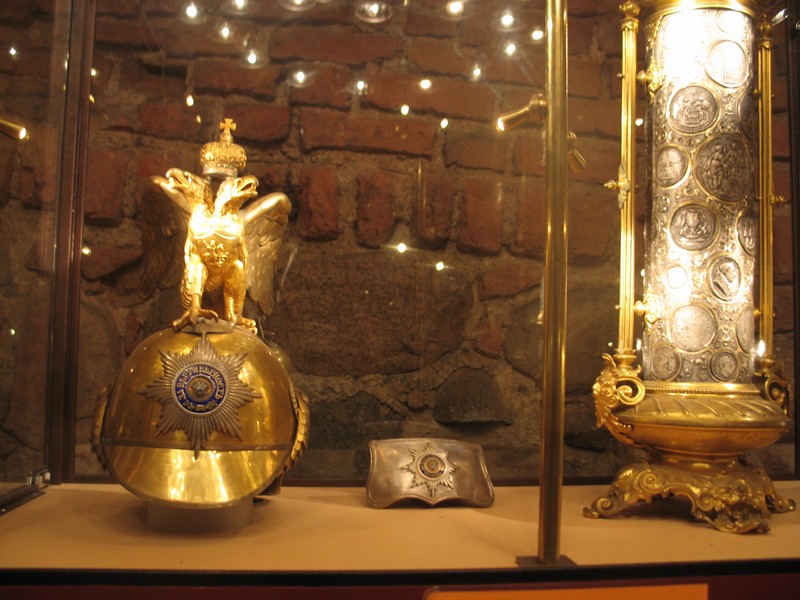 Внутри крепости выставлена экспозиция всяких старинных вещей мне очень понравился парадный шлем полицая Российской Империи: