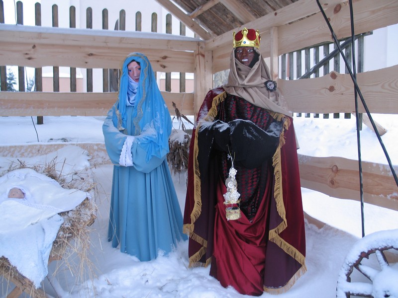 Тут тоже из кукол была составлена сцена рождения христа. Негру явно холодно в балтийских широтах, а младенца для сцены явно сперли у какой то маленькой девочки: