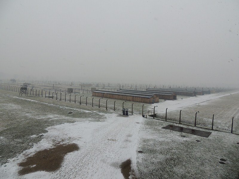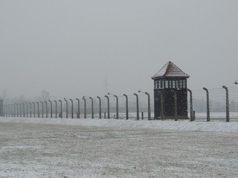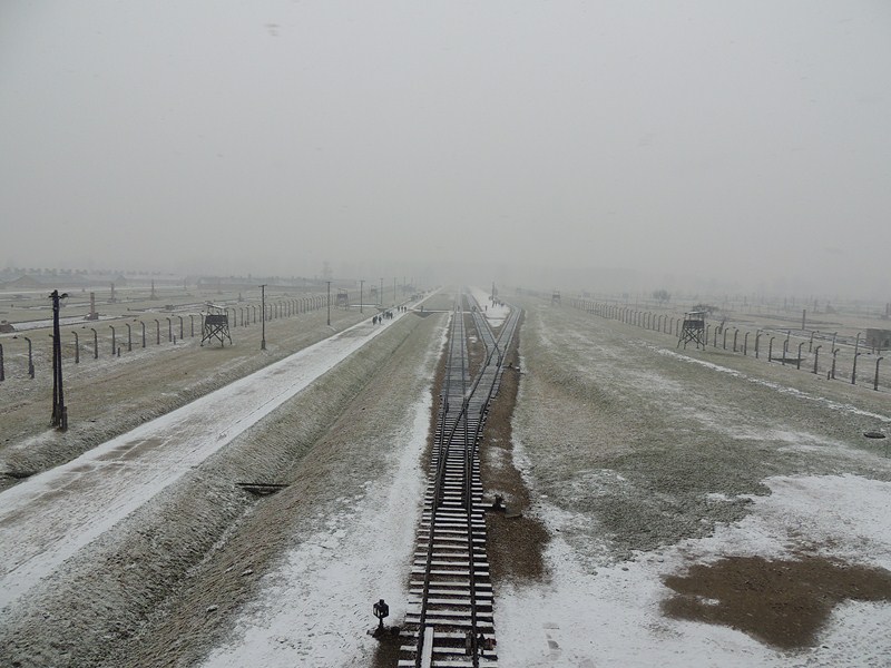 На следующий день наша экскурсионная группа поехала посмотреть Освенцим и Краков. Вход на территорию лагеря Освенцим: