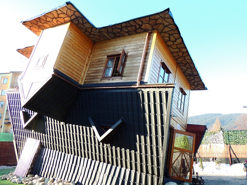 Гуляем по центру города. Первым делом почти все посетили «Dom do góry nogami» («Дом вверх ногами»):