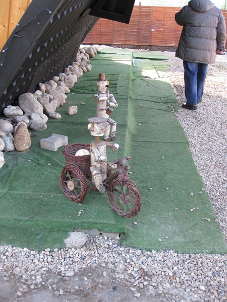 Рядом с домом расставлены такие вот забавные деревянные человечки: