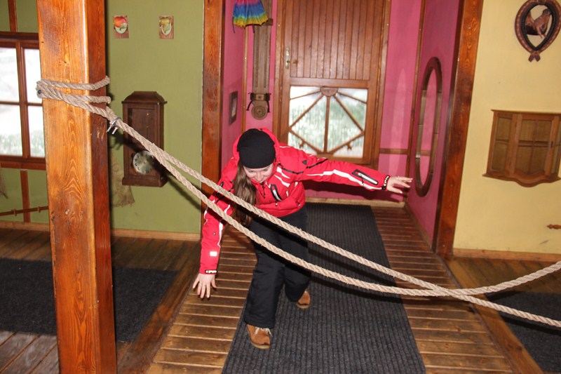 Дом стоит под углом, и равновесие там держать не так просто: