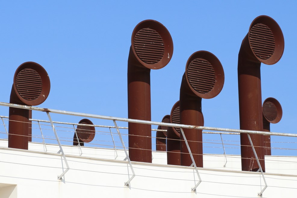 Возвращаемся к машине. На подземной парковке, где она стояла, вытяжка стилизована под воздухозаборник корабля: