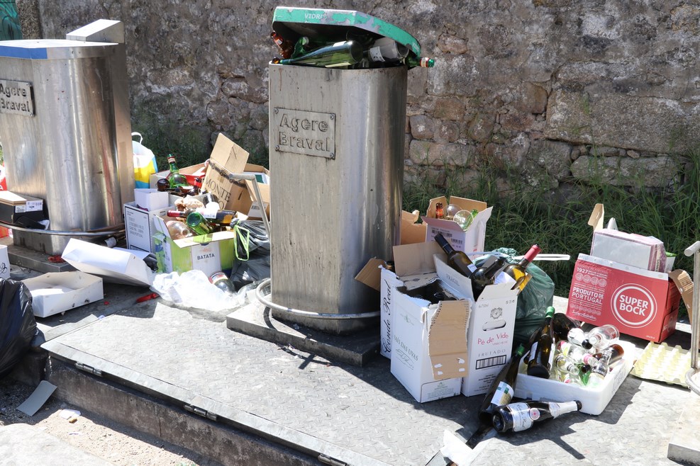 Около мусорки и в ней сплошь одни бутылки. Пьют португальцы много: