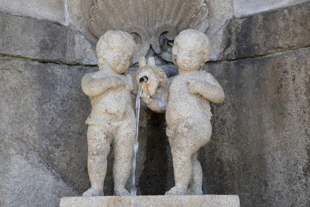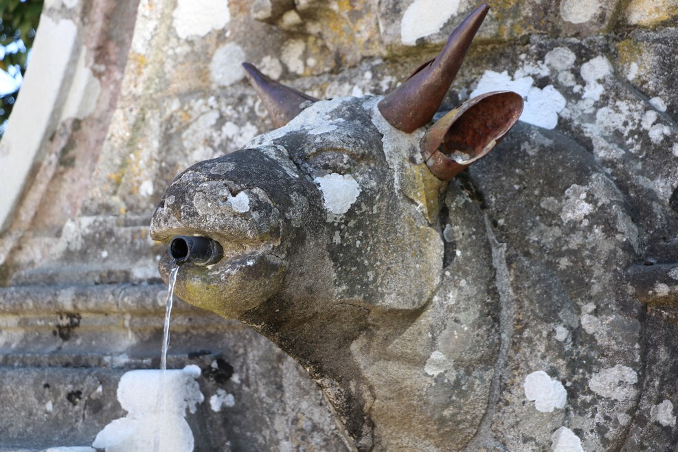 Сначала вроде все как полагается, все логично, вода течет из кувшина. Но скульптор, видимо, в процессе творчества по мере ваяния скульптур все больше и больше уходил в беспробудное пьянство. Тут вода течет уже изо рта коровы: