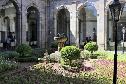 Приступим к фитнес-тренировке, будем восходить к церкви. Чтобы подниматься по лестнице было не скучно, на пролетах располагаются скульптуры, из которых течет вода: