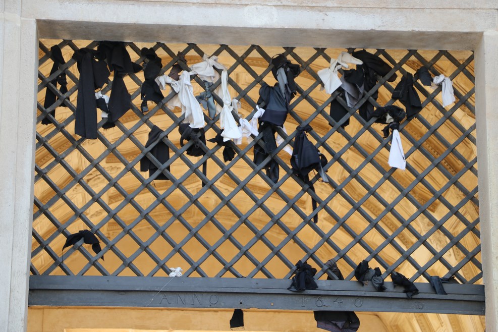 Над самим входом завязаны в узлы куски ткани. Это, наверняка, один из многочисленных студенческих ритуалов: