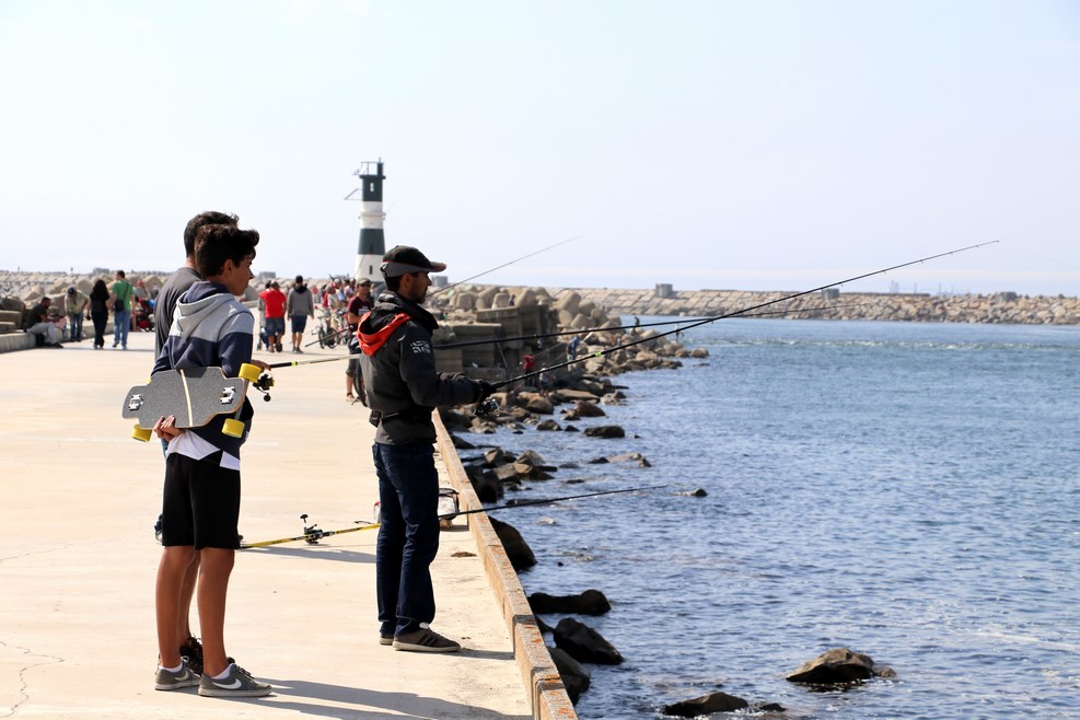 С пляжа на километр в море уходит пирс. Давайте по нему прогуляемся. Справа и слева его оккупировали множество рыбаков: