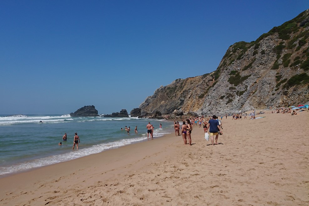 Через некоторое время приехали на пляж Adraga.[gmap mapid=3]!1m18!1m12!1m3!1d49747.45974211779!2d-9.519873021072953!3d38.80459841001356!2m3!1f0!2f0!3f0!3m2!1i1024!2i768!4f13.1!3m3!1m2!1s0x0%3A0x2032e3358d8d55d0!2sPraia+da+Adraga!5e0!3m2!1sru!2sru!4v1542211523617[/gmap]Найти тут парковку оказалось делом непростым. Извращается кто как может: