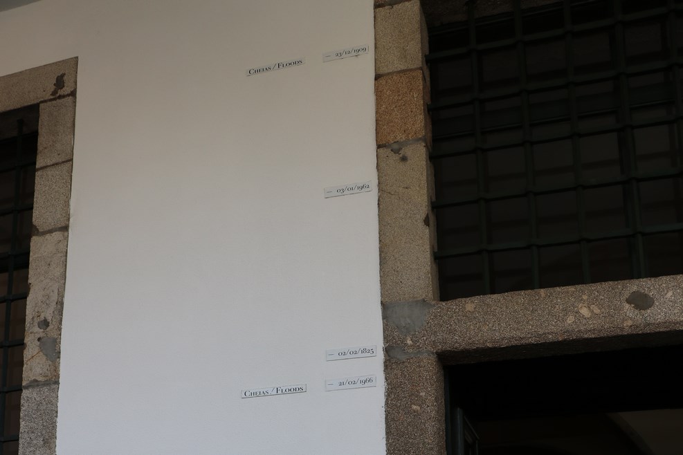 На стене наглядно показано, до какого уровня поднималась речка «Дору» в разные годы. Максимальный уровень, на глаз, был больше трех метров от фундамента здания, которое стоит в 50 метрах от берега: