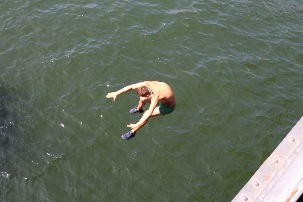 Подошли к мосту. Там стоял парень с явным намереньем сигануть вниз с высоты метров в пятнадцать: