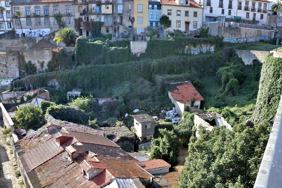 А я пошел в центр. Повезло португальцам с теплым климатом. Если есть неприглядные развалины в центре города, то просто надо все засадить вьюном. Через год это место и не узнаешь: