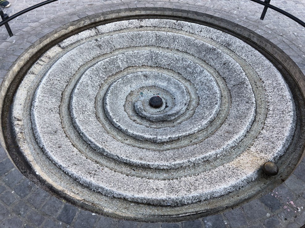 Интересный фонтан на центральной площади. Вода течет по спирали в центр: