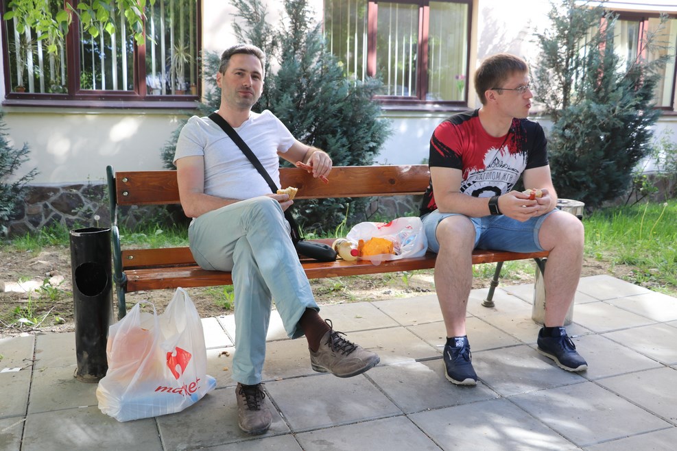 Завтрак на лавочке около гостиницы: