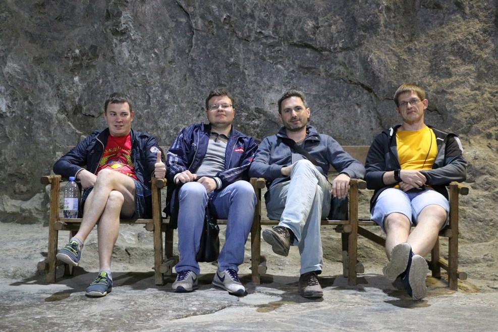 Вроде все посмотрели наверху, теперь садимся в автобус и спускаемся на нем под землю: