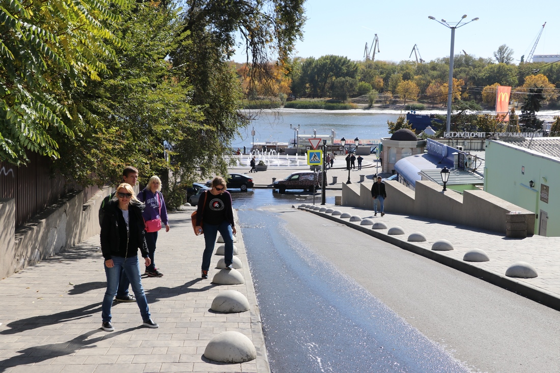 Далее прогуляемся по основной достопримечательности Ростова, идем на набережную. Найти ее было довольно легко, надо было идти прямо вдоль ручья, который организовали для нас коммунальщики:
