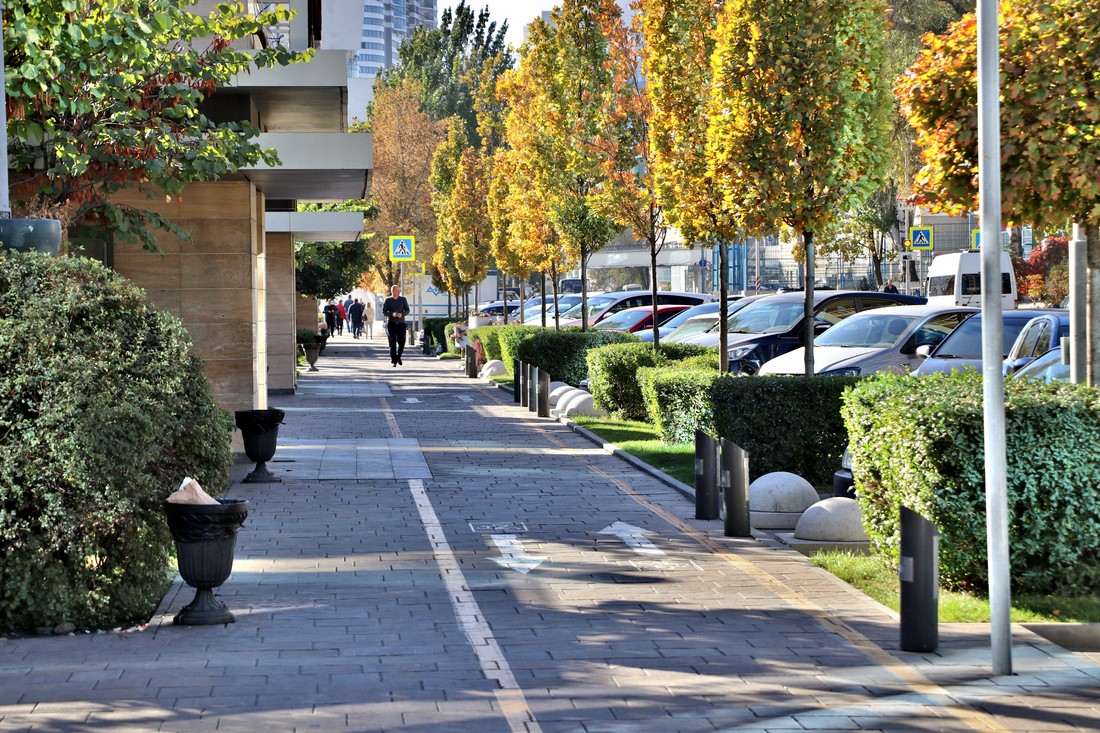 Велосипедная дорожка пуста, люди предпочитают гулять пешком: