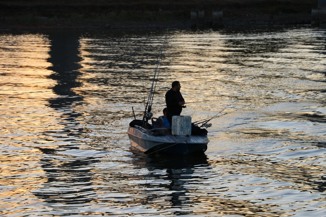 Обратно на берег мы вернулись уже затемно, но жизнь в городе вечером ничуть не угасает. Посмотрите, сколько народу стоит около художника:
