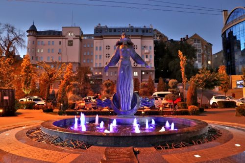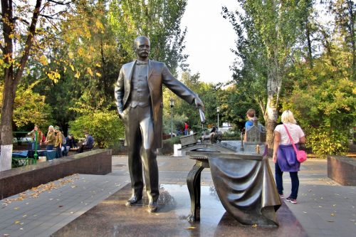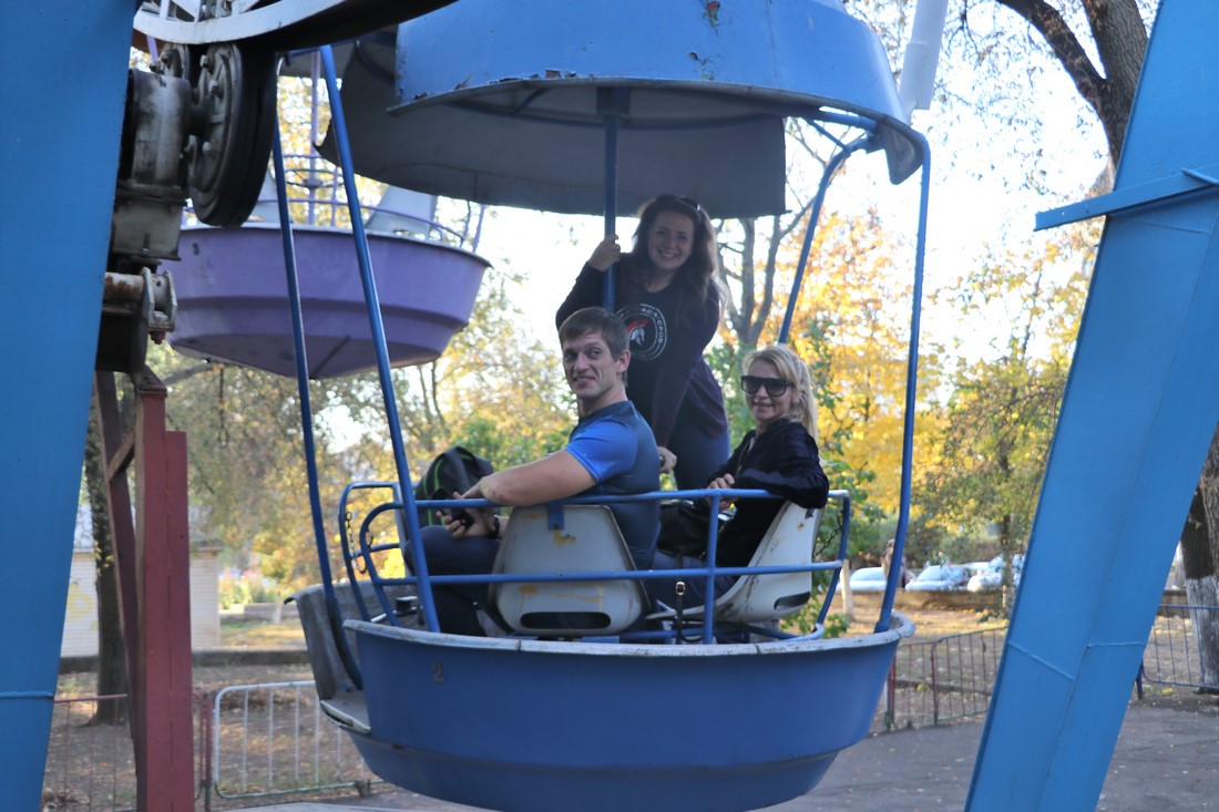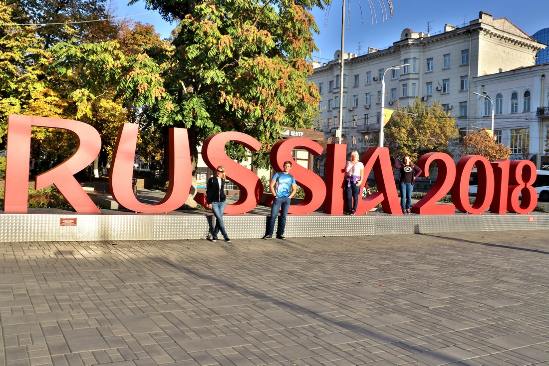 Ну ладно, хватит о еде. Теперь давайте заглянем в центральный парк им. Горького. На входе напоминание о том, что город предыдущим летом принимал чемпионат мира по футболу: