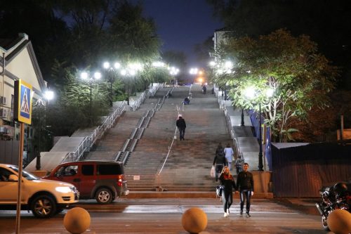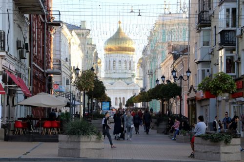 После колеса идем по пешеходной улице Пушкина. Под ногами: