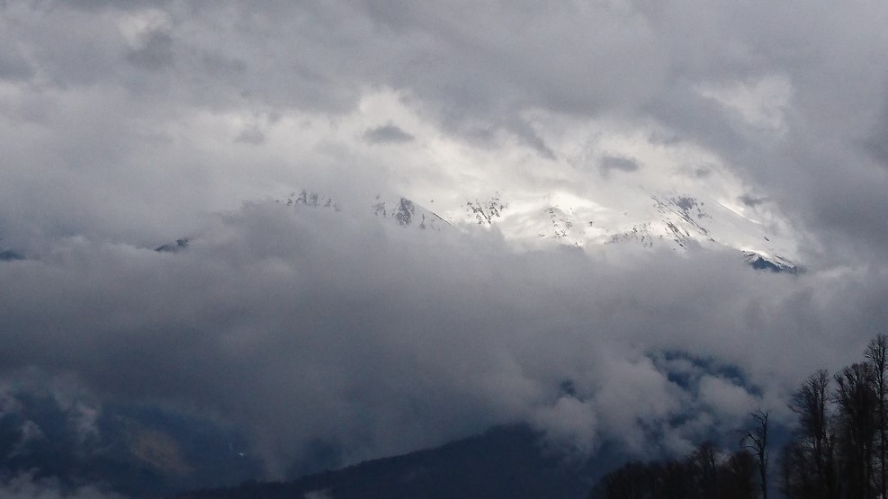 Во вторую нашу поездку на «Розу Хутор» погода испортилась, на вершине было около нуля: