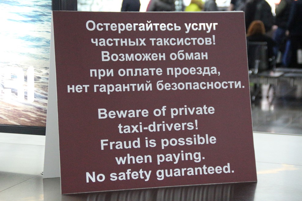 В аэропорту Сочи на ленте выдачи багажа стоит честное предупреждение, о том, что доверять местным таксистам не стоит. Лучше заказать такси по телефону (стоимость до Адлера 150 рублей, у «встречающих» таксистов стоимость может доходить до 1000):