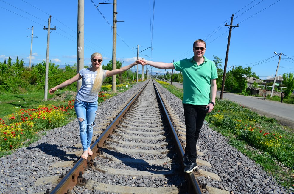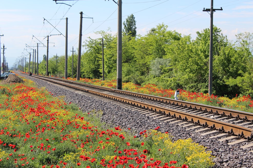По пути навигатор повел нас задними дворами, и мы наткнулись на железную дорогу, около которой росли маки: