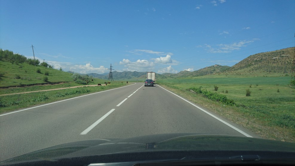 Дороги тут похуже, чем в Грузии. Сравните фото выше с дорогой, по которой мы ехали в Грузии перед границей: