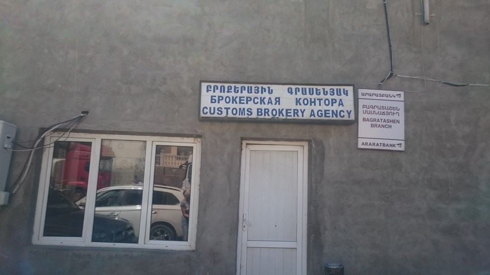 После пересечения Армянской границы пограничники заставили нас оформлять временное разрешение на ввоз автомобиля. Оформление разрешения ведется вот в такой невзрачной конторке прямо на пропускном пункте: