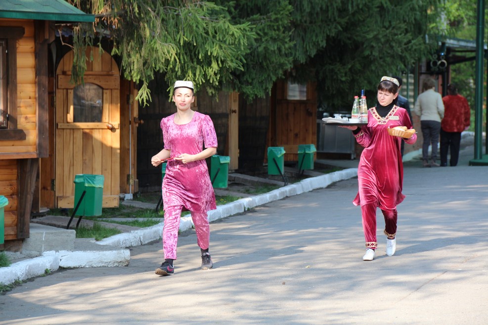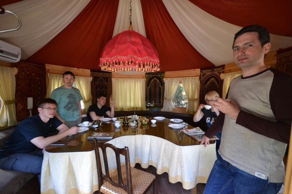 За городом мы решили покушать. Остановились в узбекском ресторане, в котором каждый стол находился внутри отдельно стоящего домика:
