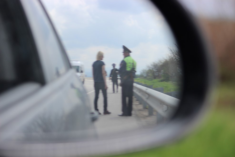 За превышение позитива на 30 км в час мы были остановлены бдящими сотрудниками. Чем они в нас стреляли неизвестно, потому что не один радар у нас не сработал. Сотрудники больше были похожи на аксакалов с гор, чем на работников гос. структур. Штрафовать они нас не стали. Поругали немного и отпустили дальше: