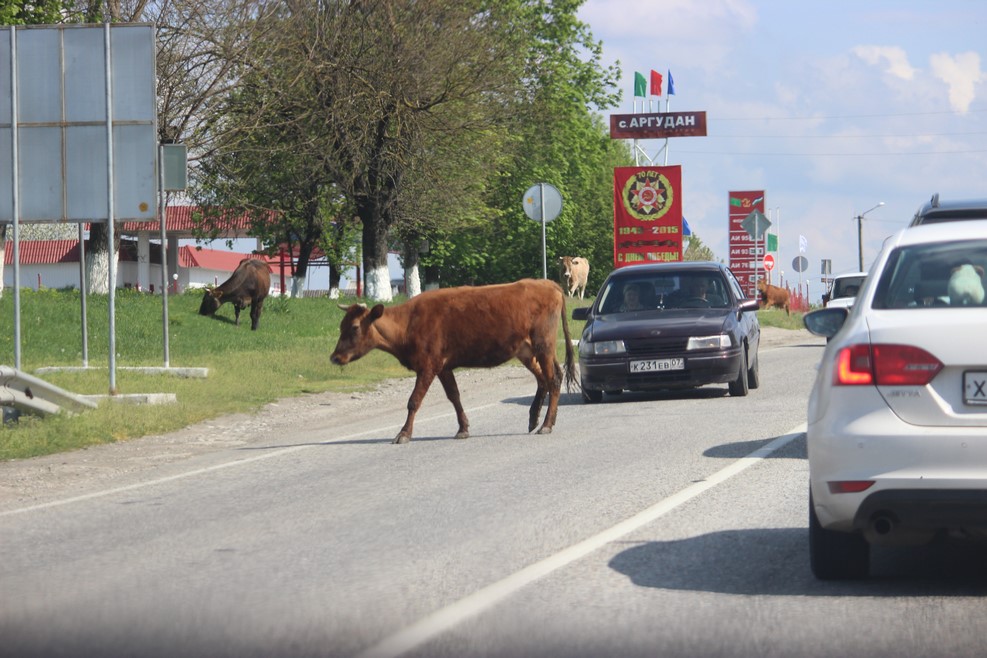 [gmap hratio=»66.66″]!1m34!1m12!1m3!1d1498336.0847318752!2d43.84726402640074!3d42.82136795374431!2m3!1f0!2f0!3f0!3m2!1i1024!2i768!4f13.1!4m19!3e0!4m5!1s0x4057a389051f9f15%3A0xce4d3adc1d5edab8!2z0JzQuNC90LXRgNCw0LvRjNC90YvQtSDQktC-0LTRiywg0KHRgtCw0LLRgNC-0L_QvtC70YzRgdC60LjQuSDQutGA0LDQuQ!3m2!1d44.216667!2d43.133333!4m5!1s0x405aa4443c0a6691%3A0x13c56a16c945d6cf!2z0JLQu9Cw0LTQuNC60LDQstC60LDQtywg0KDQtdGB0L_Rg9Cx0LvQuNC60LAg0KHQtdCy0LXRgNC90LDRjyDQntGB0LXRgtC40Y8t0JDQu9Cw0L3QuNGP!3m2!1d43.016667!2d44.65!4m5!1s0x40440cd7e64f626b%3A0x61d084ede2576ea3!2z0KLQsdC40LvQuNGB0LgsINCT0YDRg9C30LjRjw!3m2!1d41.716667!2d44.783333!5e0!3m2!1sru!2sru!4v1433349936193[/gmap]В этот день нам предстояло проехать 400 километров. Как только выехали из Пятигорска, сразу переехали границу с Кабардой: