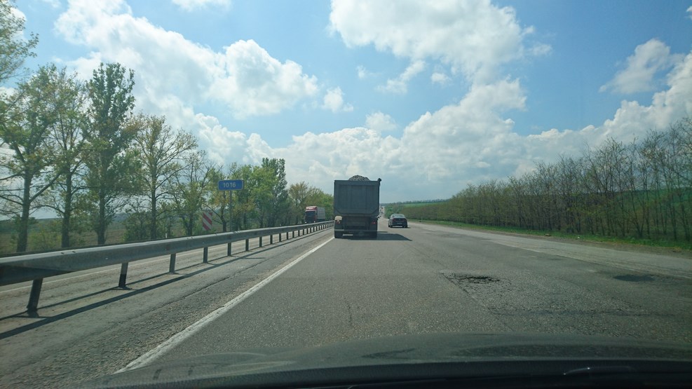 Покрытие было плохим только в Ростовской области, из-за этого неважные участки дорог грузовики объезжали в левом ряду (а мы их обгоняли справа):