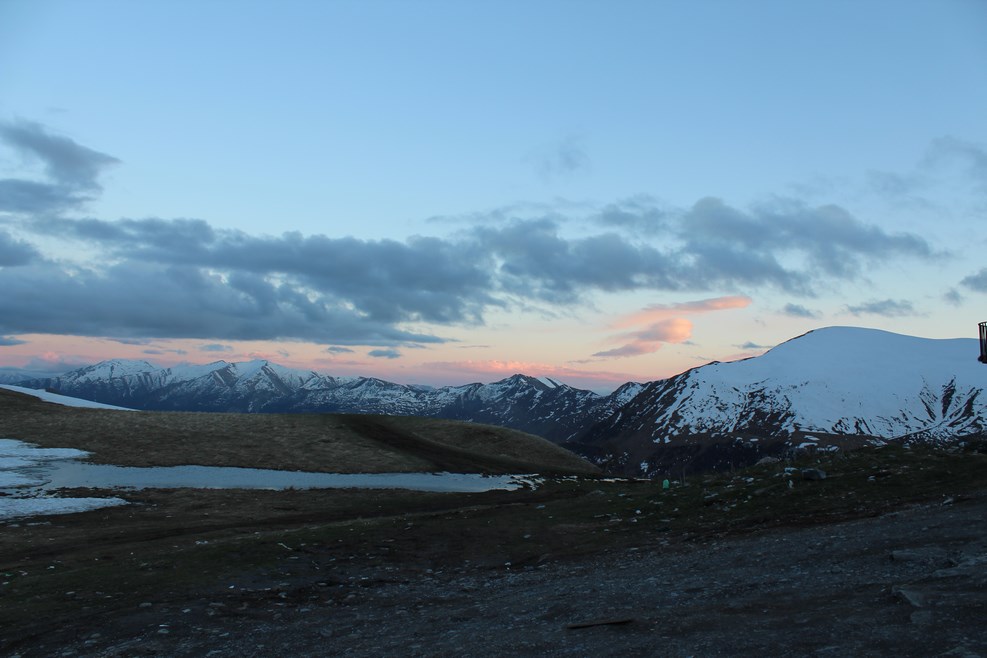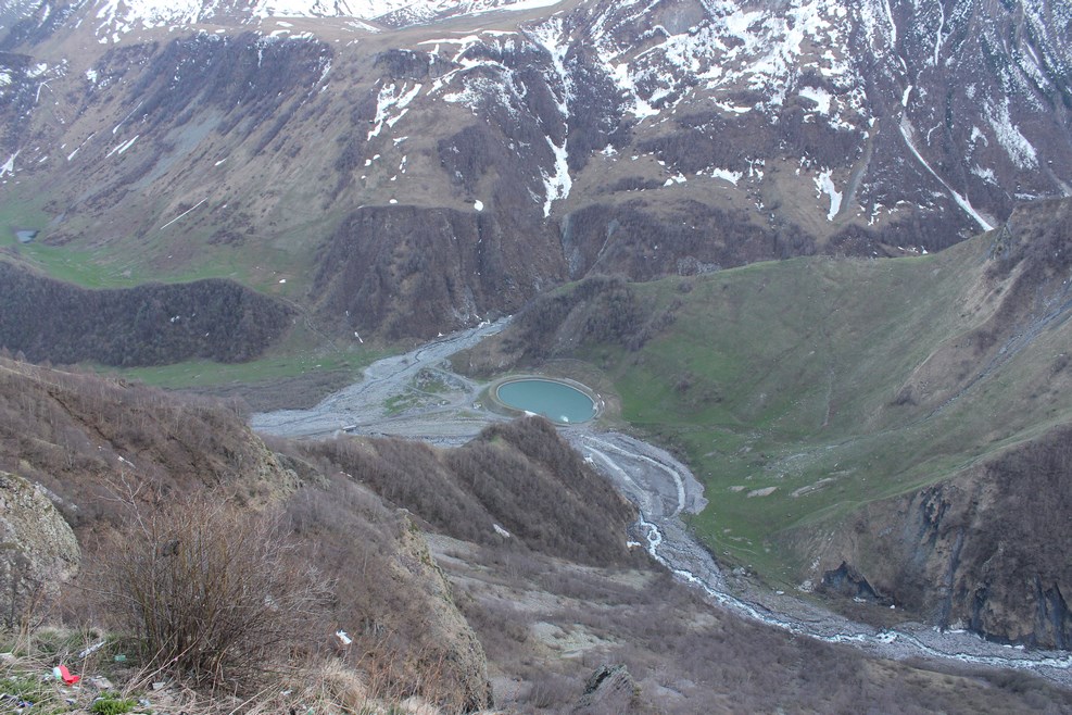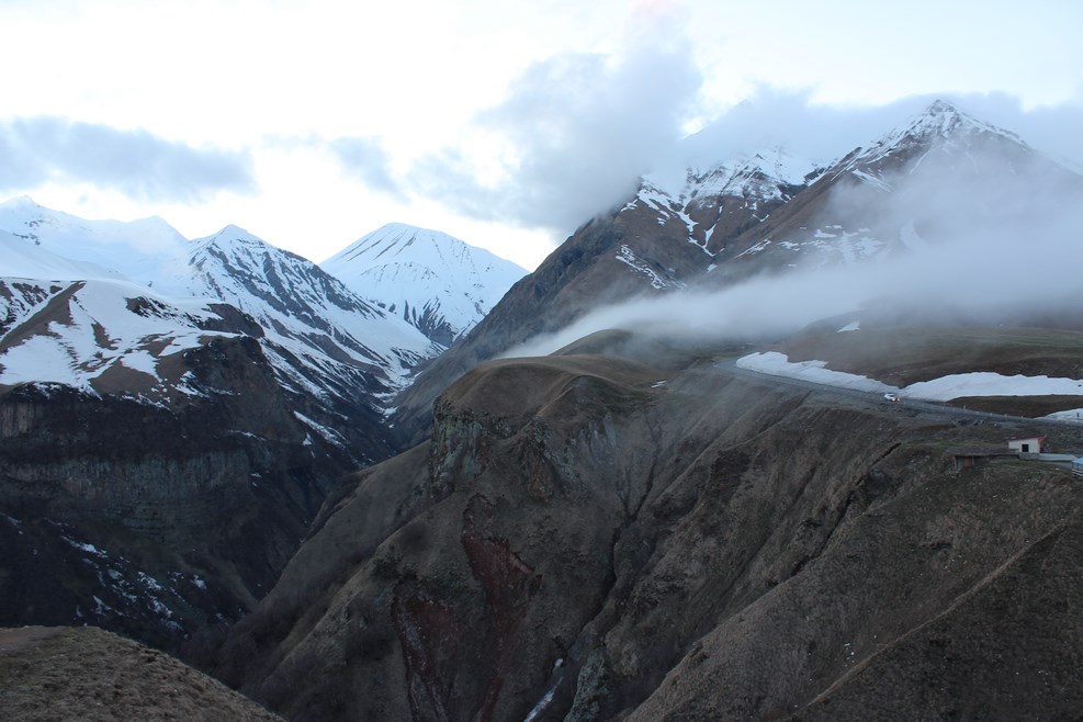 На грузинской части Военно-Грузинской дороги остался в плохом состоянии только один участок (в прошлом году их было два), остальные участки в хорошем состоянии. Подъезжаем к смотровой площадке «Арка Дружбы Народов» на Крестовом перевале (самая высокая точка дороги):