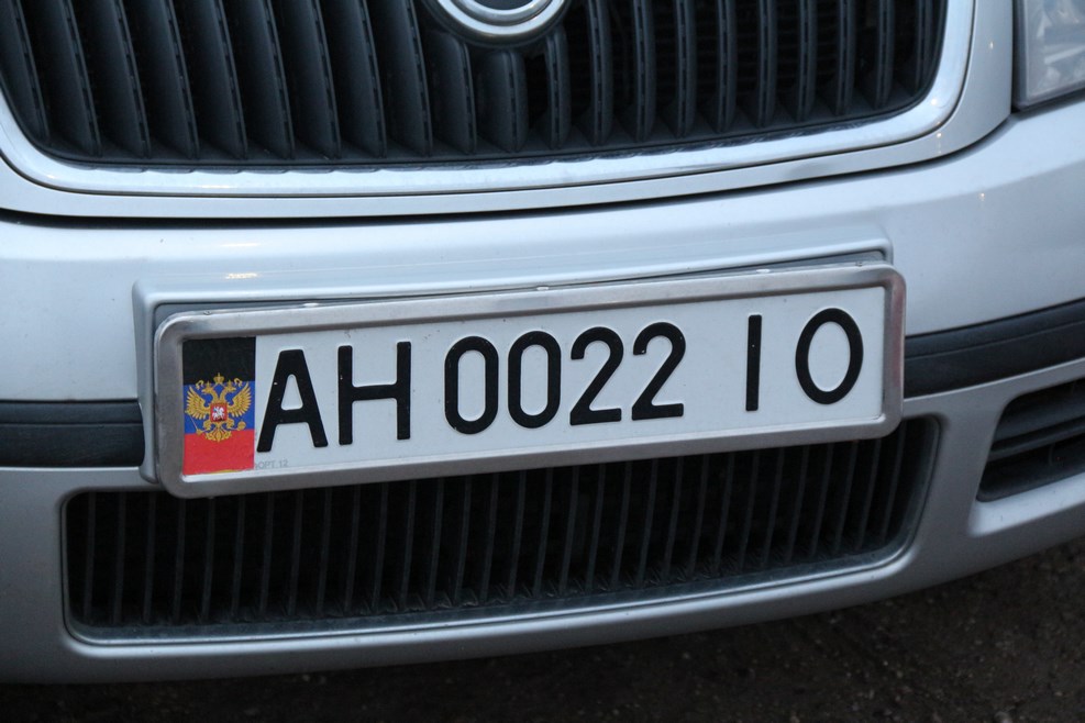 Веянье времени. Украинский номер с заклеенным украинским флагом: