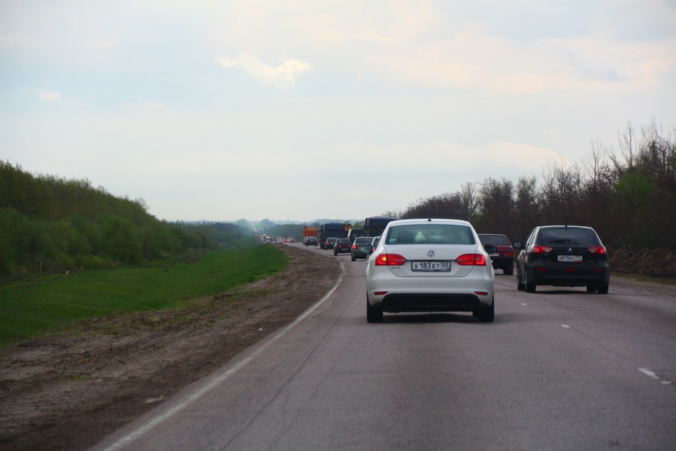[gmap hratio=”66.66″]!1m34!1m12!1m3!1d5273195.622869857!2d35.64839406660054!3d49.80857965060899!2m3!1f0!2f0!3f0!3m2!1i1024!2i768!4f13.1!4m19!3e0!4m5!1s0x46b54afc73d4b0c9%3A0x3d44d6cc5757cf4c!2z0JzQvtGB0LrQstCw!3m2!1d55.755826!2d37.6173!4m5!1s0x413b2f5ce874e813%3A0x48d94c0efba762bd!2z0JLQvtGA0L7QvdC10LYsINCS0L7RgNC-0L3QtdC20YHQutCw0Y8g0L7QsdC70LDRgdGC0Yw!3m2!1d51.675496599999995!2d39.2088823!4m5!1s0x4057762a50e3030d%3A0x5dad6f4a0bf09184!2z0J_Rj9GC0LjQs9C-0YDRgdC6LCDQodGC0LDQstGA0L7Qv9C-0LvRjNGB0LrQuNC5INC60YDQsNC5!3m2!1d44.05!2d43.05!5e0!3m2!1sru!2sru!4v1433350673310[/gmap]Первый перегон был довольно длинный, сразу до Пятигорска. Вся дорога у нас заняла 23 часа на 1600 км. Вначале пути трафик был довольно плотный: