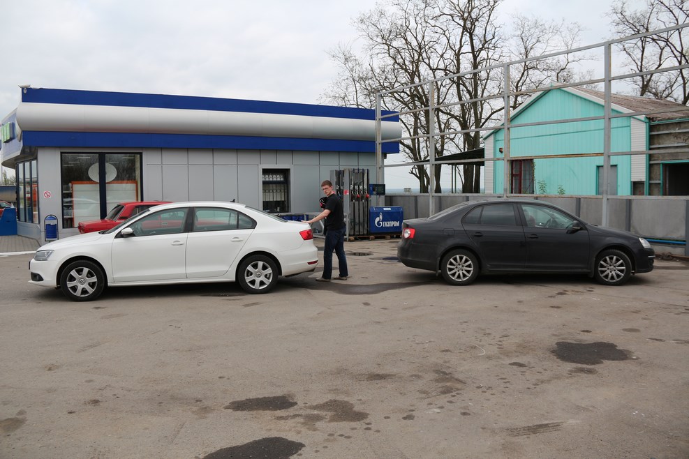 А это уже наши кони. Слева Джетта 6 (двигатель 1.6, 5-ступенчатая МКПП) справа Джетта 5 (двигатель 1.6, 7-ступенчатая DSG). Джетта на механике кушала бензин чуть меньше (примерно на 0,4 литра на 100 км.):
