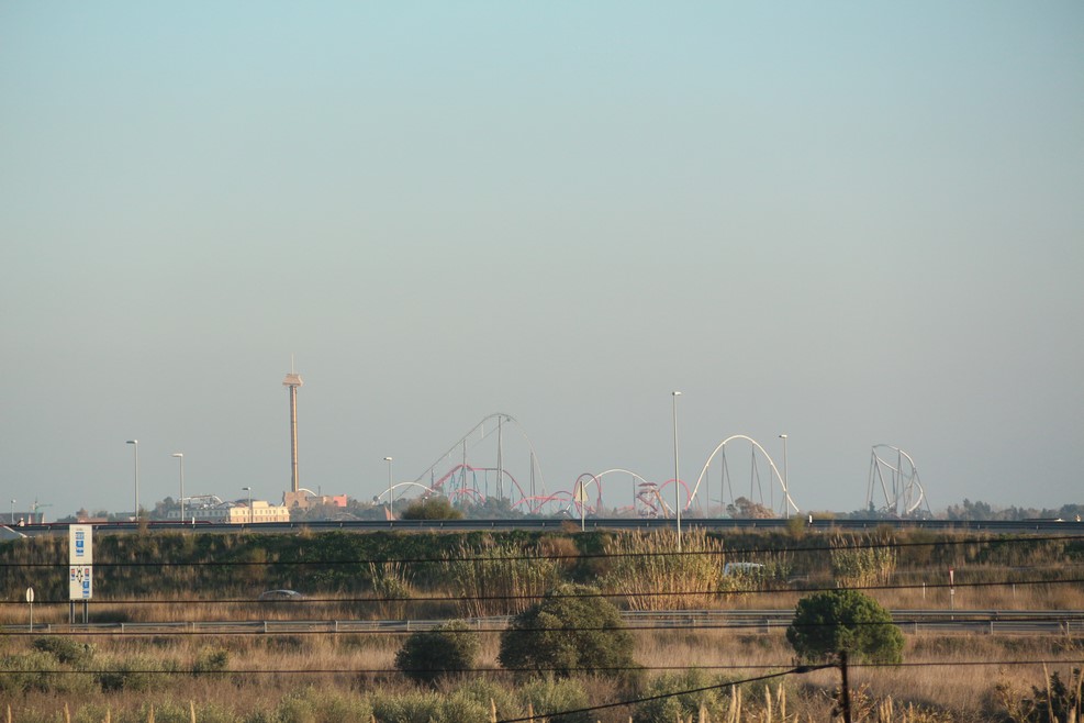 Вид на знаменитый парк «Порт Авентура» со стороны дороги: